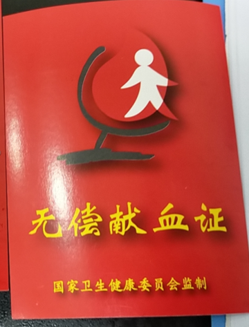 鲜红的献血证印证着“除人类之病痛,助健康之完美”的誓言。
