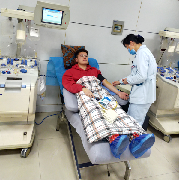 许多学生撸起衣袖,伸出臂膀,用无偿献血的方式助力人民健康。有的同学到校园内献血车献血,有的同学到蚌埠市中心血站无偿献血小板。