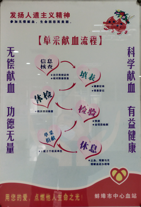 志愿者们在工作人员引导下,认真填写个人资料,详细了解献血知识及有关注意事项,自觉排队接受健康征询和血液初筛,经过测血压、验血型、抽血化验、领证等程序,完成大爱献血光荣之举。