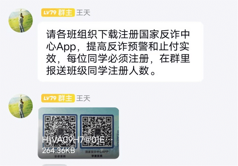 建立了三级反诈防骗联络群,2021年级建立了年级和班级反诈防骗联络群,由辅导员和班级安全委员分别管理。利用联络群,及时向同学们发布警情通报、警示案例、反诈信息和反诈防骗知识,各级防骗联络群层层转发,实现由点到面几何扩散宣传教育,将防诈知识宣传工作常态化。截止目前,2021年级学生无一例电信受骗案件。
