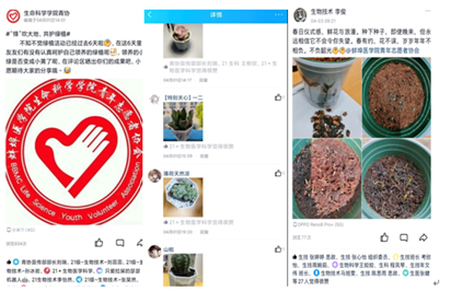 青年志愿者协会的志愿者提前来到大圆盘,为活动做好充足准备。摆台前,同学们排起长龙队伍,志愿者们积极维持现场秩序并做好耐心引导。4月1日至9日期间,青年志愿者协会在官方账号上发表互动说说,同学们积极参与交流互动,纷纷晒出自己精心养护的绿植,分享养护心得,字里行间洋溢着浓浓的欣喜感与自豪感,活动在同学们满满的收获中圆满落幕。