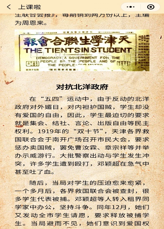 各团支部团员通过微信小程序“五四青年小课堂”平台,学习伟人事迹之五四时期的邓颖超,了解了邓颖超生平事迹以及她对五四运动做出的杰出贡献,更加深刻理解了五四运动的内容与内涵,表示在今后要团结勤奋、锐意进取,以实际行动体现共青团员的先进性,在新时代的舞台上奋力书写更加壮丽的篇章。