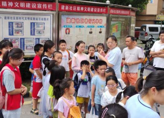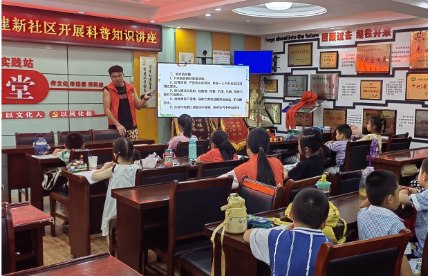 7月10日,同学们到达建新社区,开展小朋友知识科普活动。采用通俗易懂、贴近小朋友的方式科普人体、天文科技、日常生活和交通安全等方面的知识,回答小朋友感兴趣的问题,引导小朋友对知识探索的兴趣,给小朋友们带来一堂生动的人体知识启蒙课。