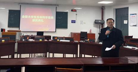 党总支书记韩力发表了热情洋溢的致辞,对获奖的同学给予热烈的祝贺,对辛勤付出的各位指导老师给予诚挚的慰问,并鼓励全院师生进一步继续努力奋进,不断取得新的更优的成绩,“师生齐心,其利断金”。