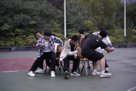 双人挤气球游戏中,同学们默契配合,在欢声笑语中,完成一个又一个任务。抢板凳游戏中同学们用汗水展现了永不言弃的竞技精神,台下观众们的欢呼声、加油声此起彼伏。