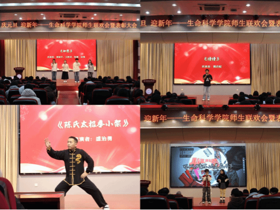 在校大学术报告厅隆重举行了“庆元旦 迎新年”师生联欢会暨表彰大会。学院全体师生400余人欢聚一堂,共迎新年。