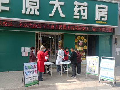 为进一步提高辖区居民的防范意识,保障居民身心健康,营造疫情防控知识普及的良好氛围,4月14日上午,琥珀社区新时代文明实践站联合辖区单位药店共同开展了疫情防控知识宣传活动。