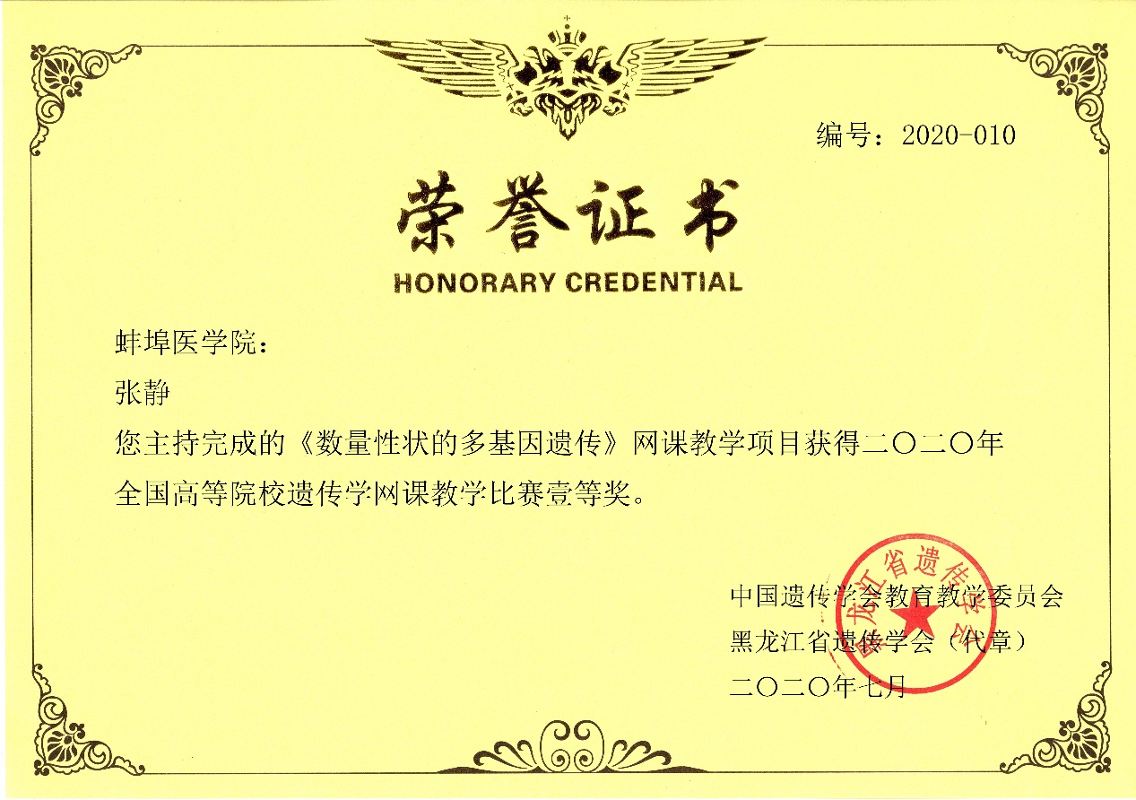 遗传学教研室疫情期间在保证“停课不停学”本科生正常教学的同时,积极响应学校领导号召,疫情期间也不放松提升教师专业发展和教学能力,积极动员组织教师参与中国遗传学会、中国遗传学会教育教学委员会举办的2020年全国高等院校遗传学网课教学比赛。