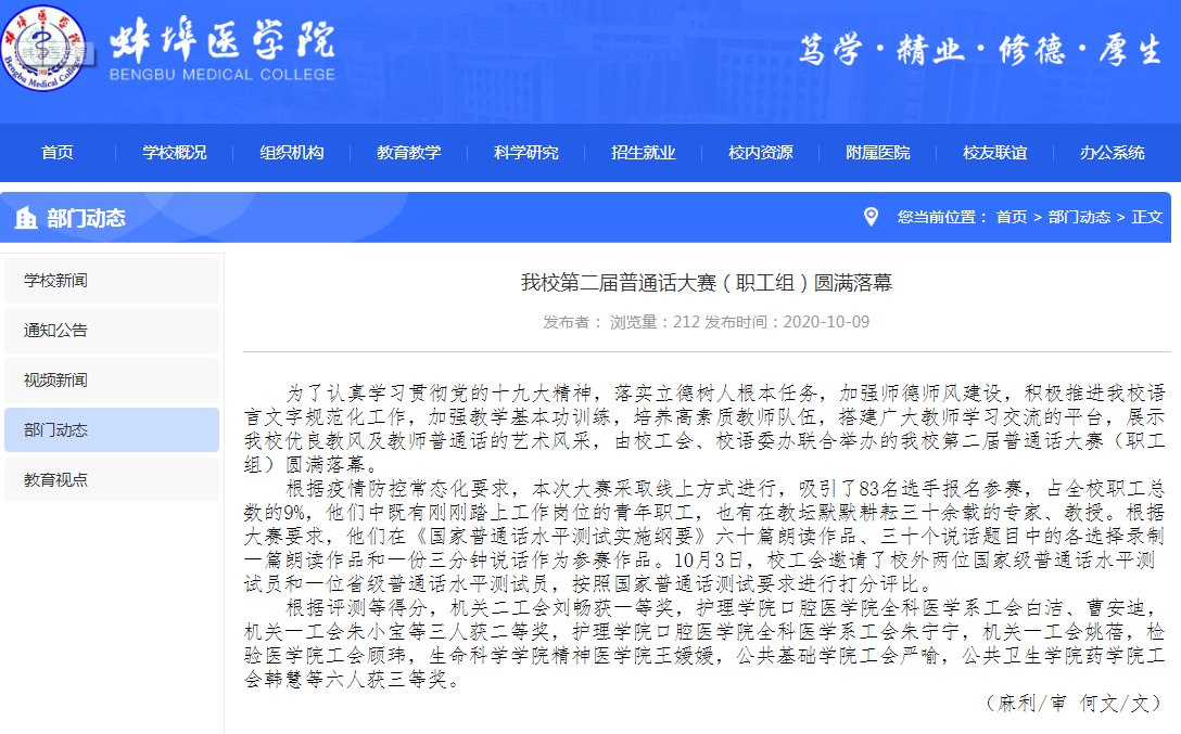 根据疫情防控常态化要求,本次大赛采取线上方式进行,吸引了83名选手报名参赛,占全校职工总数的9%,他们中既有刚刚踏上工作岗位的青年职工,也有在教坛默默耕耘三十余载的专家、教授。根据大赛要求,他们在《国家普通话水平测试实施纲要》六十篇朗读作品、三十个说话题目中的各选择录制一篇朗读作品和一份三分钟说话作为参赛作品。