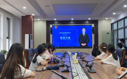 在会议室,师生们共同观看禁毒宣传片和预防网络诈骗宣传片,对毒品的种类和危害、诈骗的类型与预防措施有了更深刻的了解。