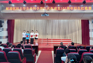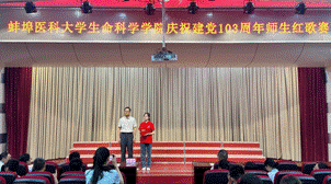 在学术报告厅举行庆祝建党103周年师生红歌比赛。全体教职工和近300名在校学生参加了比赛。