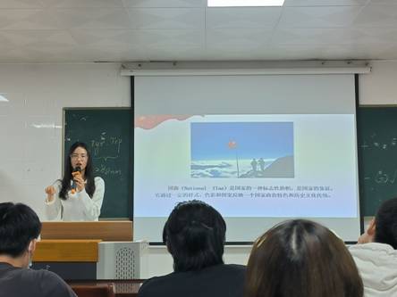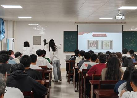 紧接着,贺行春引导同学们说出了“國”和“国”的区别,并阐释其蕴含的深意,向同学们强调应珍惜由先辈们抛头颅洒热血换来的和平年代。