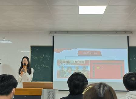 首先,贺行春抛出一系列问题:你认为什么是国防?大学生你爱国吗?什么场合会使你爱国心爆棚?你认为爱国行为容易被忽视的原因有哪些?同学们纷纷说出了自己的想法。通过与同学们的现场讨论,贺行春概括爱国行为容易被忽视的原因有历史知识匮乏、爱国意识的偏差、安逸的成长环境以及网络媒体的冲击四点。